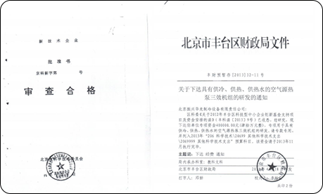 2007年7月,公司“水環熱泵三效機”研發項目,榮獲豐臺區科學技術獎三等獎。